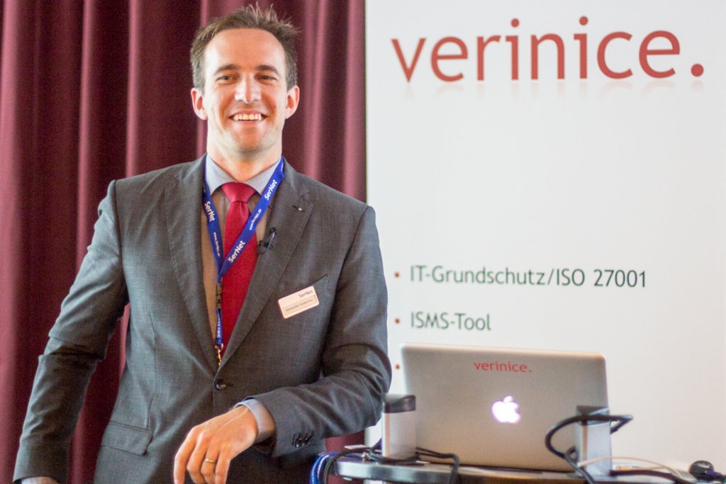 Mit dem Auftakt zur verinice.XP zeigt sich Dr. Johannes Loxen, Geschäftsführer der SerNet GmbH, äußert zufrieden. „Für uns als Toolhersteller und Herausgeber von verinice ist es wichtig, mit Anwendern in Kontakt zu treten. Wir wollen direkt hören, was die Anforderungen sind und wie verinice zur Anwendung gebracht wird.“ So zeigte beispielsweise Torsten Hemmer (Dienstleistungs-GmbH des Gesamtverband der Deutschen Versicherungswirtschaft / GDV-DL), wie „Informationssicherheit in der GDV-DL“ umgesetzt wird. Dazu werden z.B. die Inhalte der IT-Grundschutzkataloge in der ISMS-Perspektive von verinice genutzt. Loxen: „Ungewöhnlich, aber eben in verinice möglich.“ Loxen selbst demonstrierte mit seiner verinice-Anwenderlandkarte, dass verinice bereits in ganz Deutschland etabliert und im europäischen Ausland auf bestem Weg sei. "Wir verzeichnen derzeit etwa 10 Zugriffe auf unsere Update-Server pro Stunde, die Zahl aktiver Clients liegt bei mehr als 10.000." Dass verinice in sehr unterschiedlichen Szenarien bei sehr unterschiedlichen Anwendern im Einsatz sei, bestätigte auch verinice-Teamleiter Alexander Koderman. „Wir bieten ein flexibles Tool an und hören bei der Planung unserer künftigen Entwicklung genau darauf, was Anwender benötigen und erwarten.“ Er unterstrich dies mit seinem Vortrag über die verinice-Roadmap anhand von 2015 bereits implementierten und für 2016 geplanten Funktionen. Am morgigen ISO-Tag wird u.a. Volker Jacumeit (DIN e.V.) die Keynote: "IT Sicherheitsnormen der ISO/IEC 27000-er" bestreiten.